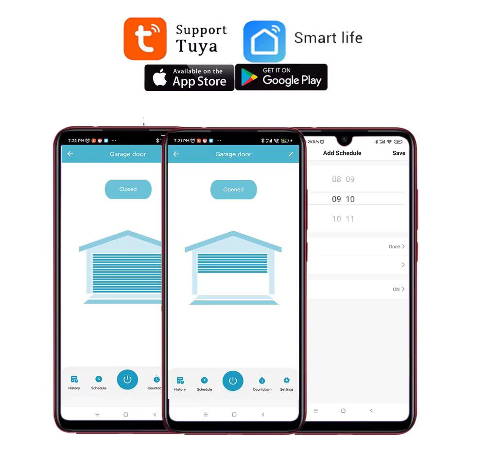 📱 Contrôle via application : Ouvrez et fermez votre garage à distance avec l’application Tuya Smart Life.